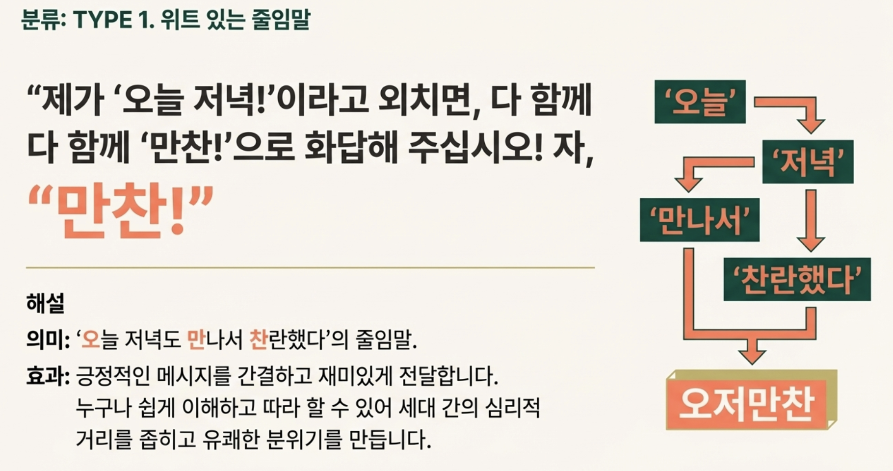 - 유행어 과의존: 참석자가 이해하지 못하면 세대 간 단절감을 키웁니다.