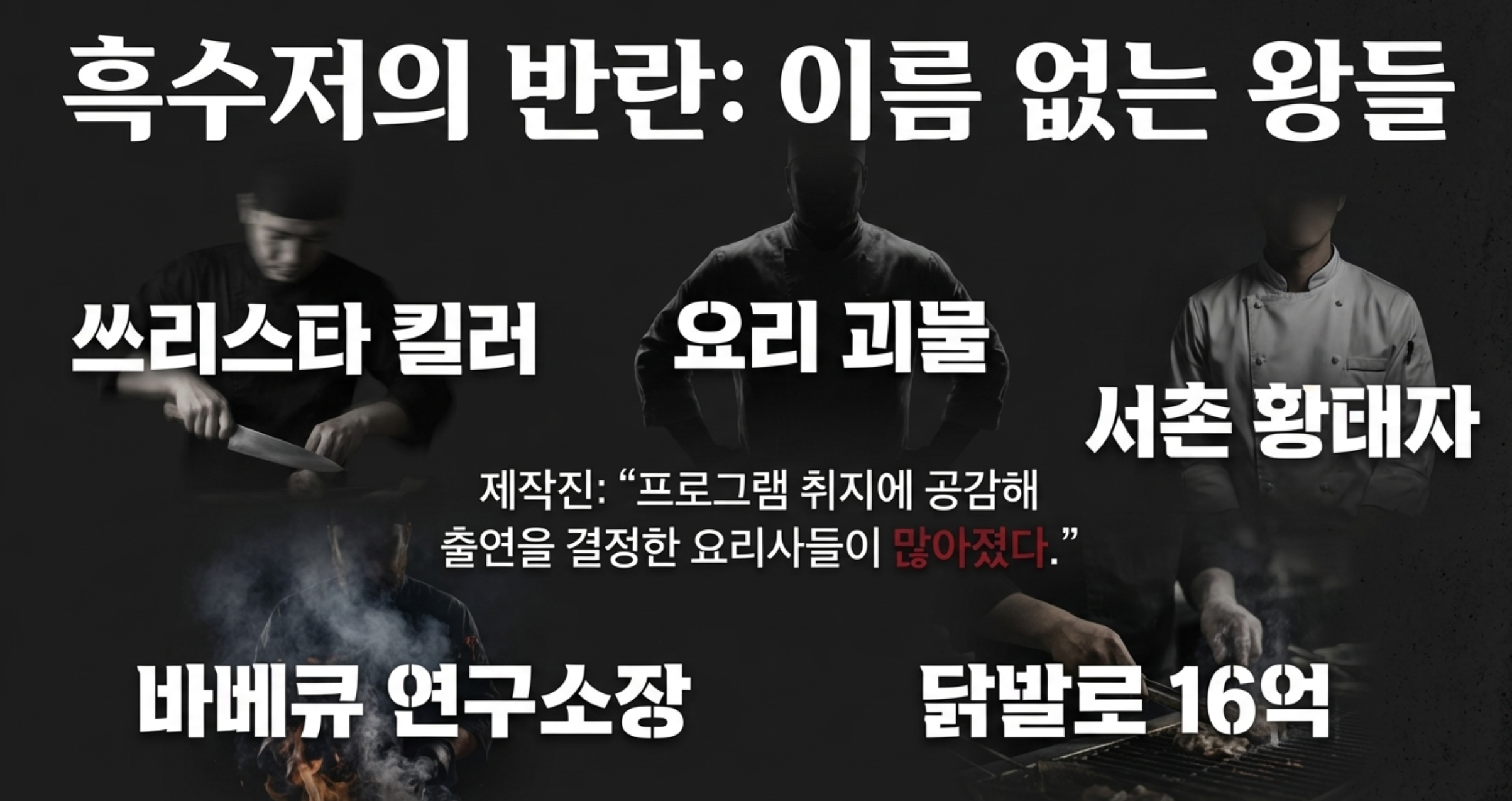 💡 여기서 잠깐! 재미있는 사실 하나! 이번 시즌은 '방출' 같은 가혹한 룰은 절대 없다고 해요. 대신 팀전은 줄이고 1:1 대결을 늘려 셰프들이 오로지 '요리 실력'만으로 부딪칠 수 있게 판을 깔았다고 하니, 요리 그 자체에 더 집중해서 즐길 수 있겠죠?