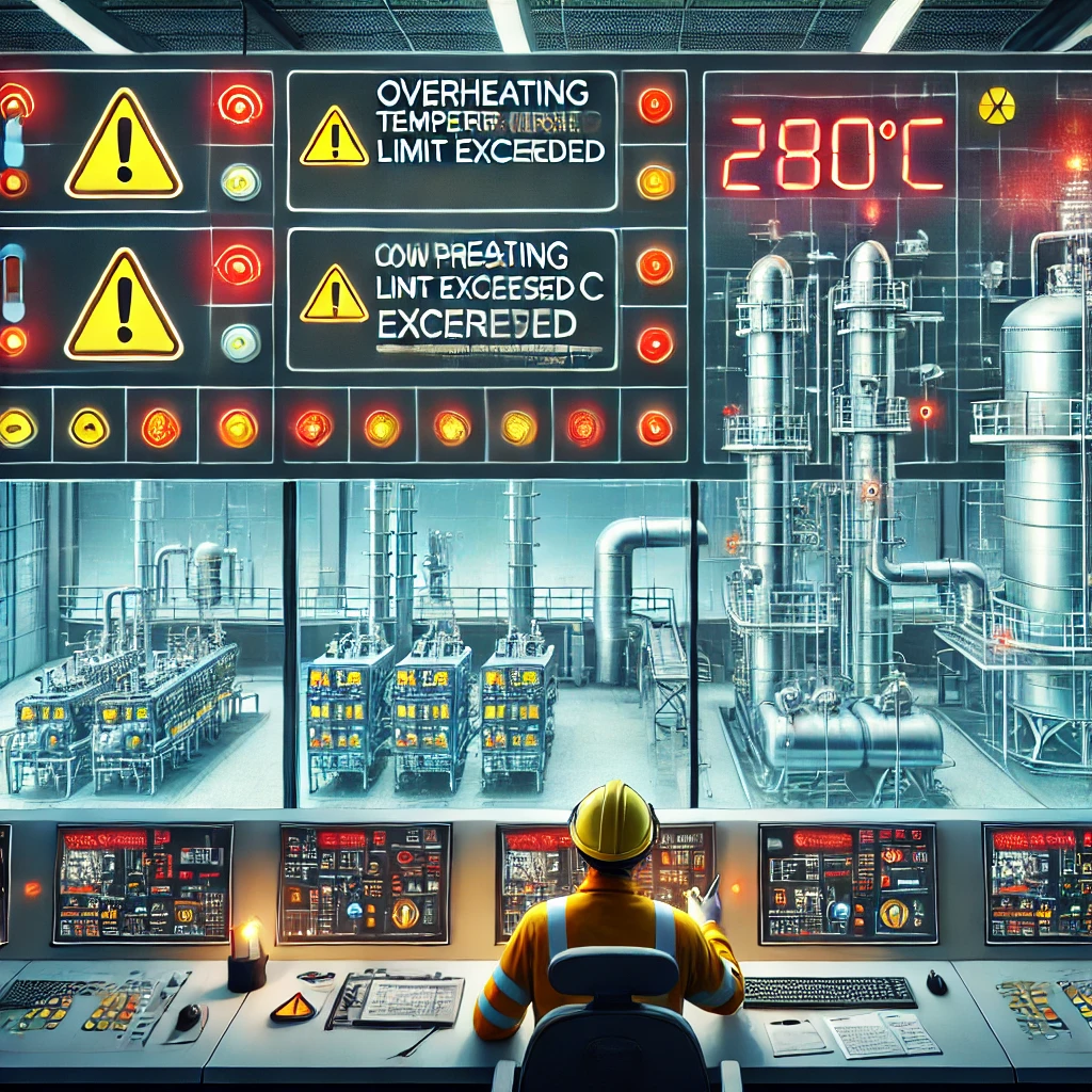- 예: "온도 280℃ 초과 경보", "유량 부족 경보"