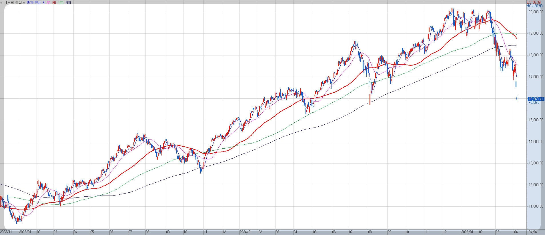 이번 주는 특히 미국 증시의 폭락과 한국 대선 관련 정치 테마주 급등이라는 두 가지 큰 이슈가 있었습니다. 현재 나스닥은 팬데믹 이후 최대 하락을 보이고 있습니다. 미국의 관세 부과에 따른 관세보복, 인플레이션 우려 및 경기 침체 우려 등으로 인하여 미국 시장은 조정장에 들어섰습니다. (기술적으로 미국 시장에서 고점대비 -10% 이상의 하락의 경우 조정장이라고 말하며, 20% 이상 하락 시 약세장이라고 표현합니다.)
