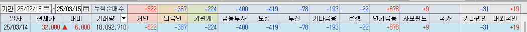 - 당일 연기금 매수세 : 보기 힘든 현상임.